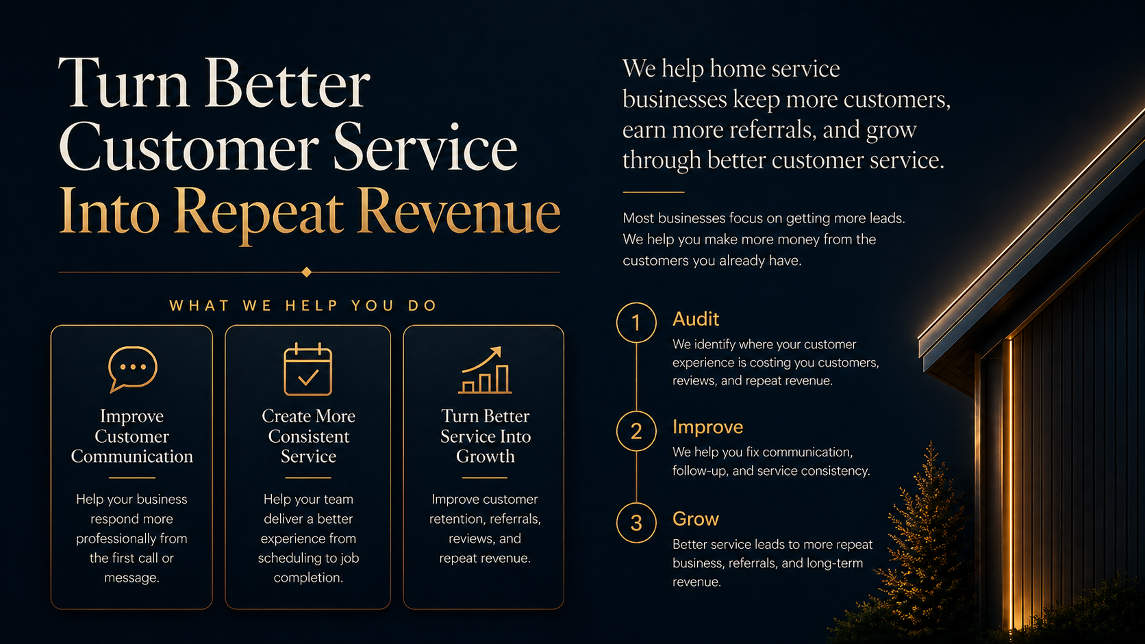 We help home service businesses keep more customers, earn more referrals, and grow through better customer service.